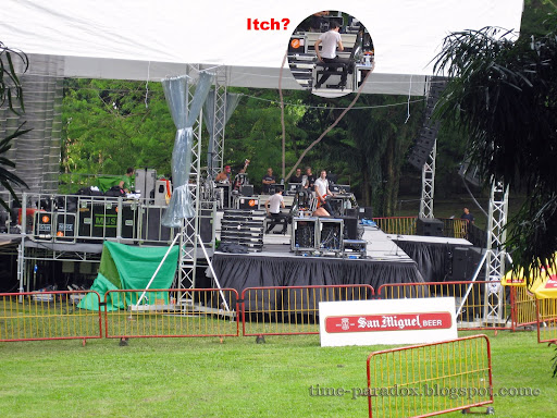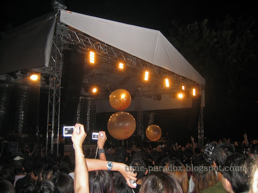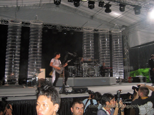The gig started at 8.40pm. This is when the real terror begins. The shoving (not moshing!) becomes extremely violent, I tell you. People in the front row, including Jo & I, were just totally squashed. Packed even tighter than sardines in a can. I can swear on this, I tell you. Nobody could breathe easy at all. Elbows were like everywhere. Less than 1 minute in, the shoving claimed it's first victim. Girls started passing out and people were like begging for help from the security guards. If you fall, you're dead meat. A huge number of people requested to get pulled out by the guards. I couldn't take it too. Jo asked to be pulled out by the end of the 2nd song and I "tapped out" near the end of the 3rd song. Got pulled over the fence. I wish I've stayed on, 'coz the conditions kinda stabilized after half an hour. It's alright, we all know who were responsible for the shoving. :)